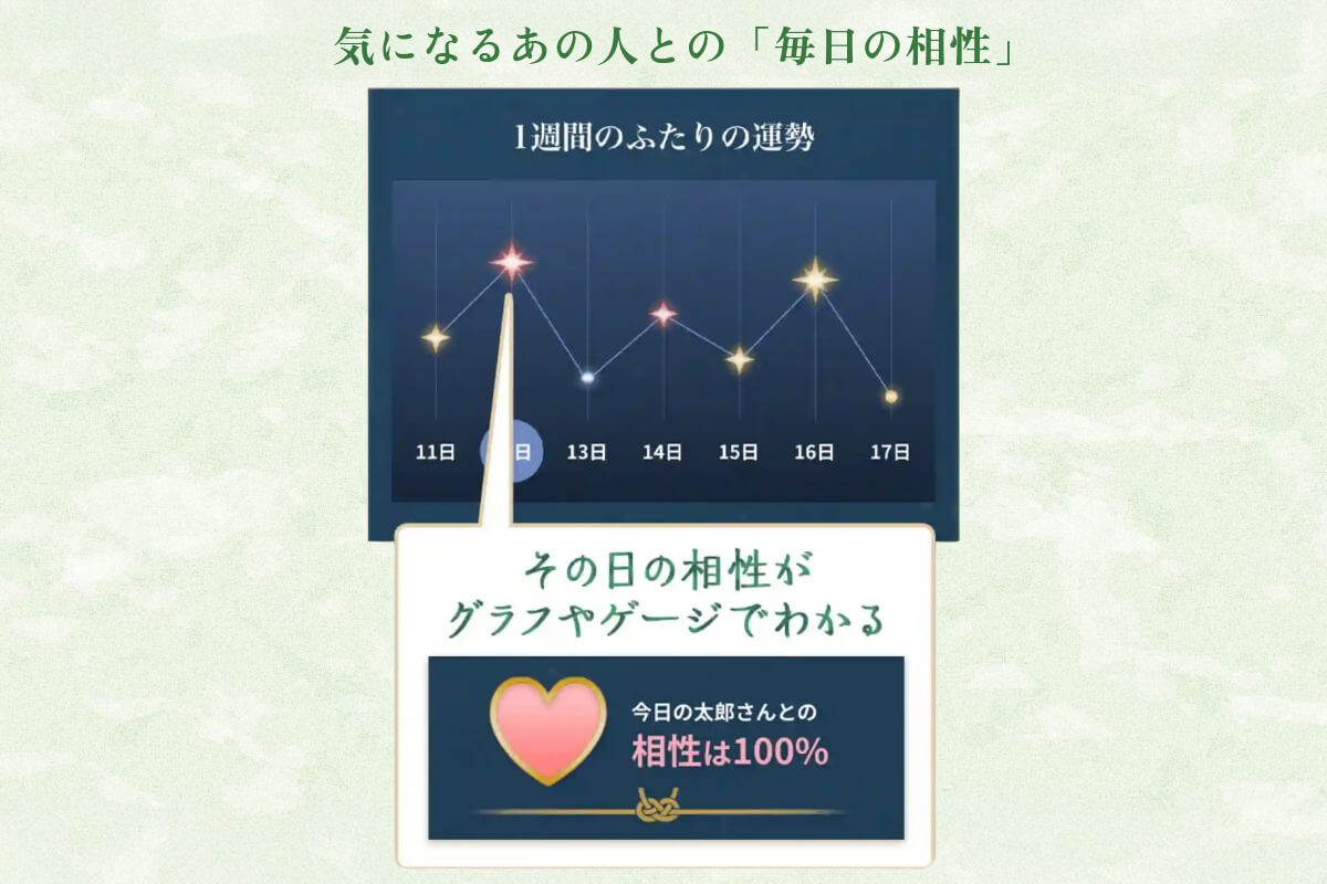 あなたと気になるあの人との相性はどうなのか。これからどんな出来事が起こり、どうすれば恋が成就するのか?